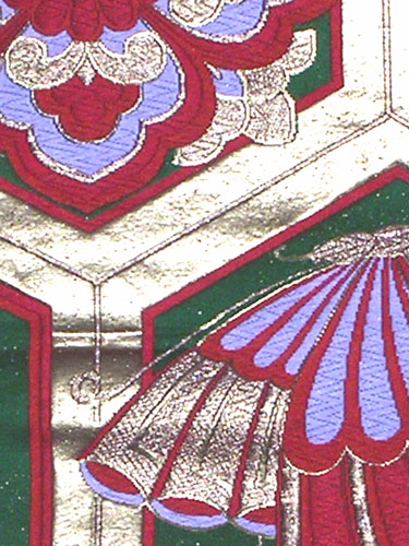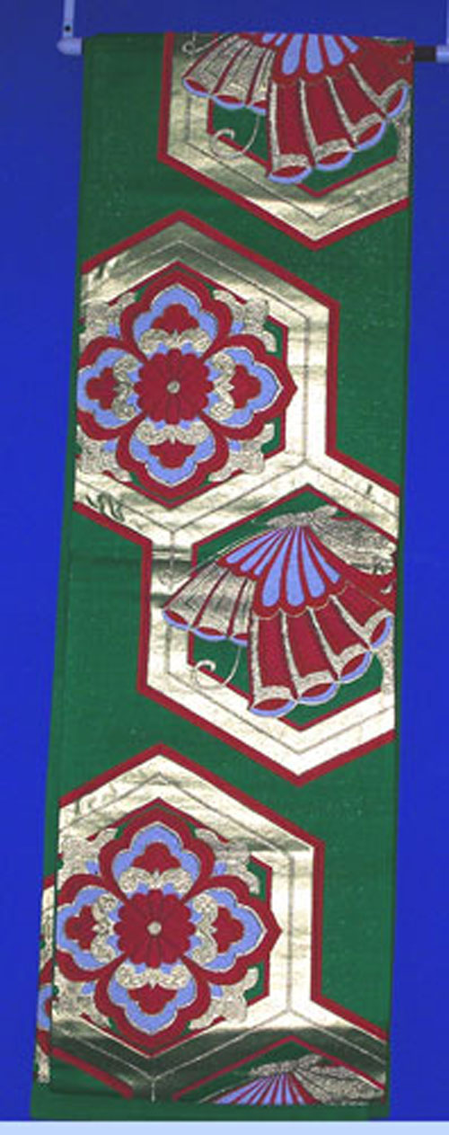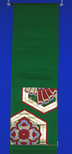 This Fukuro obi is beautifuly decorated with green, red and gold The obi is made of silk