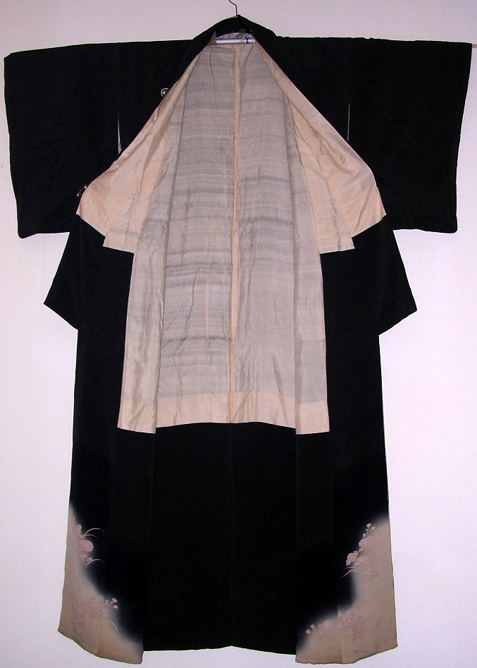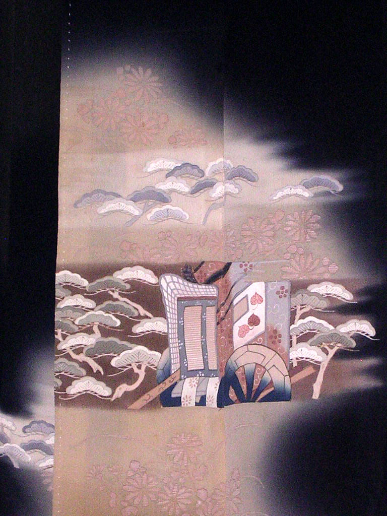 This a showa period tomesode kimono is made of silk with a painted design - Yuzen and has lovley enbroidery work